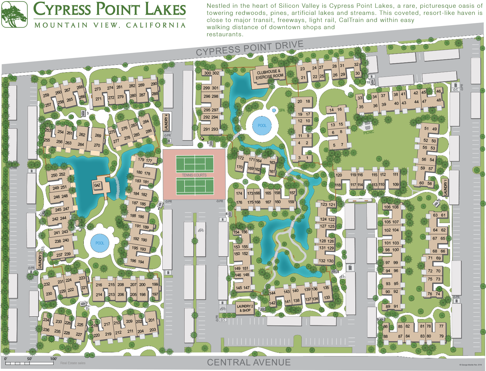 Cypress Point Lakes in Mountain View, California was constructed in 1970 and 1971 by local developer, Thrust IV. Over 1979 and 1980 extensive renovations were carried out as we were converted from apartments to condominiums. Our homeowners association, Cypress Point Lakes Association, was formed in 1979 and the first Board meetings with homeowner members took place in 1980.